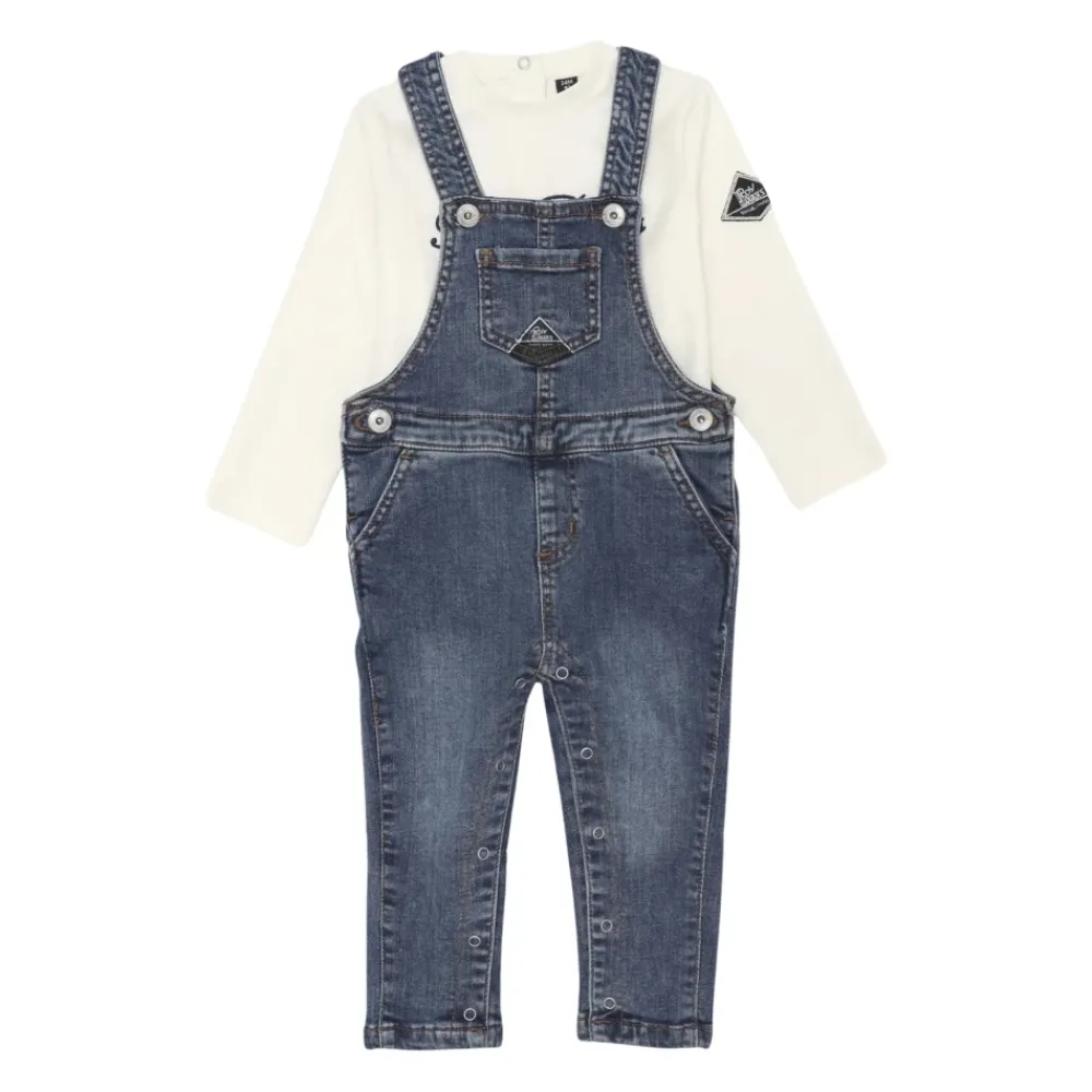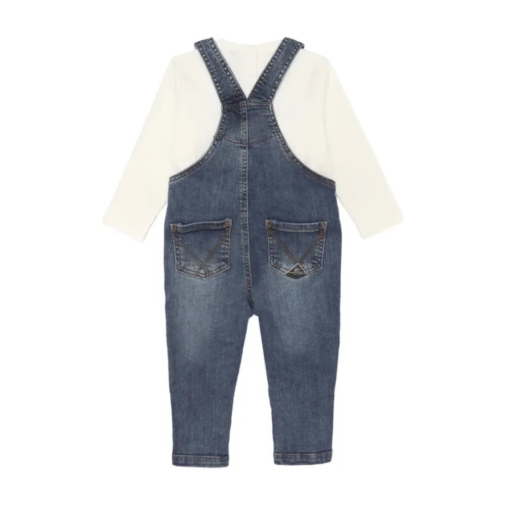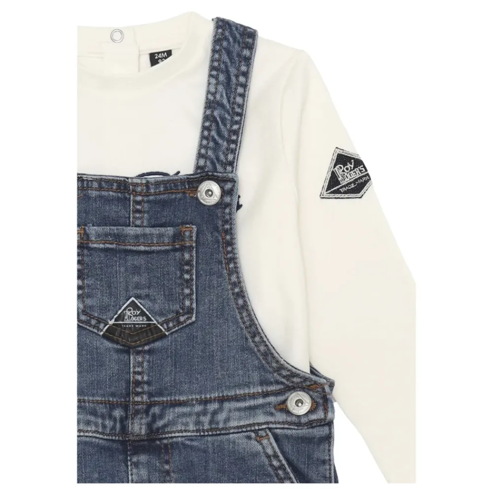Roy Roger’s Kids Jumpsuit Set voor pasgeborenen bestaande uit denim tuinbroek en off white longsleeve t-shirt, een praktische en stijlvolle outfit voor elke gelegenheid. De 100% katoenen tuinbroek heeft verstelbare bandjes met knoopsluiting, zij- en achterzakken, voor een casual en comfortabele uitstraling. Het bijpassende t-shirt, ook van katoen, maakt de outfit compleet met eenvoud en elegantie, en zorgt voor zachtheid en comfort tegen de huid. Een veelzijdige set perfect voor school, vrije tijd of speciale gelegenheden, te dragen met sneakers of enkellaarsjes voor een moderne en functionele look. Productdetails: Merk: Roy Rogers Samenstelling: 100% katoen Kleur: Off white (t-shirt) + denim blauw (tuinbroek) Tuinbroek met knoopsluiting Zij- en achterzakken Klassieke ronde hals voor het t-shirt Leverancierscode: RH248B005-A11 Wasinstructies: Machinewasbaar op 30°C.