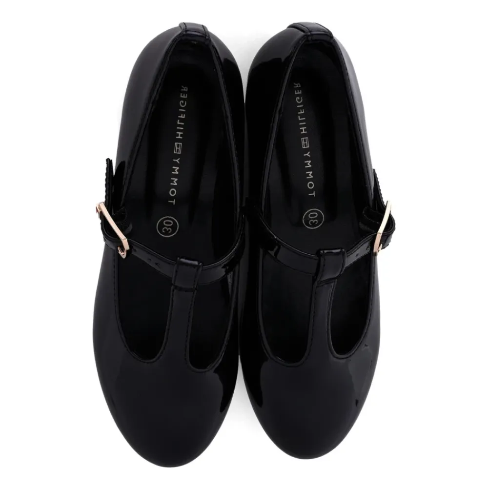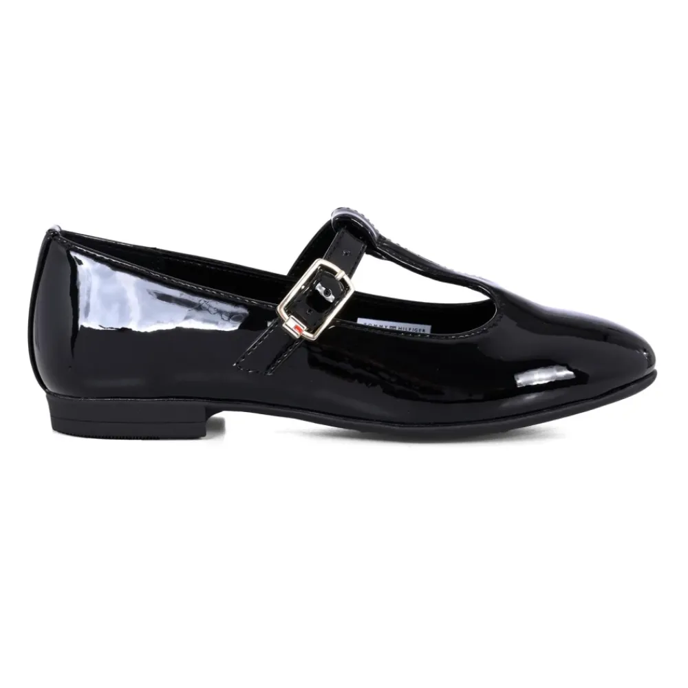 Verrijk de stijl van je kleine meid met deze zwarte lakleren ballerina’s van Tommy Hilfiger. Met een rubberen zool, verstelbare band en iconische vlaggesp zijn deze schoenen zowel stijlvol als comfortabel. Gemaakt van 100% synthetische materialen.