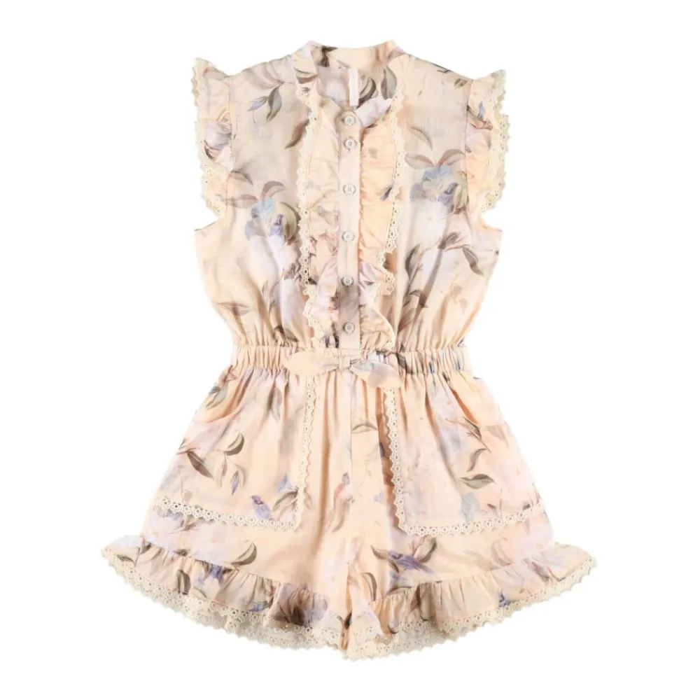 Upgrade de garderobe van je kleine meid met deze charmante Zimmermann jumpsuit. Voorzien van een elastische taille met een vast strikje, functionele zakken, kanten afwerking en gevoerde shorts. Gemaakt van 100% katoen in China.